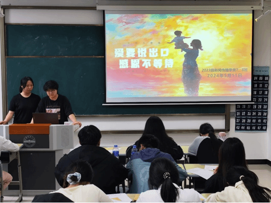 “同學(xué)們,猜一猜明天是什么節(jié)日???”“母親節(jié)!”5月11日,新聞傳播學(xué)類專業(yè)2023(7)、(8)班在K202教室開展以“愛要說出口,感恩不等待”為主題的團(tuán)建活動(dòng)?;顒?dòng)開始前,活動(dòng)負(fù)責(zé)人、新聞傳播學(xué)類專業(yè)2023(7)、(8)班的班長(zhǎng)楊雨霏、朱研溪提前為每位同學(xué)準(zhǔn)備好信紙和信封。朱研溪說:“我們希望通過寫信這種傳統(tǒng)而深情的溝通方式,讓同學(xué)們勇敢表達(dá)自己的心聲,將對(duì)母親的愛訴說于筆尖?!睂W(xué)生們觀看一段關(guān)于母愛的感人短片后,...